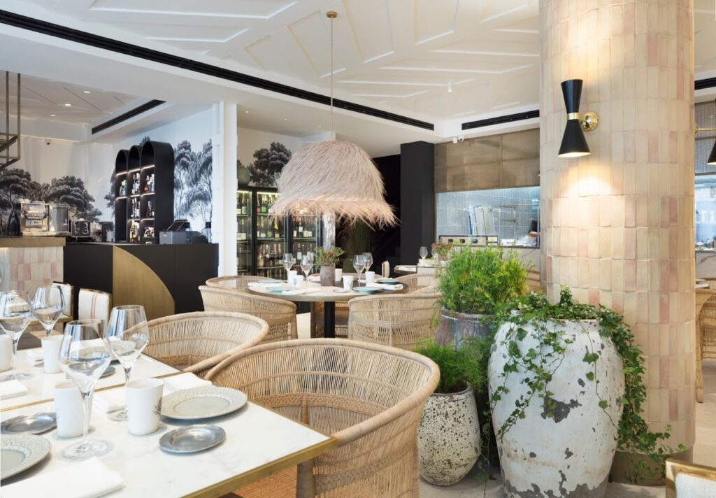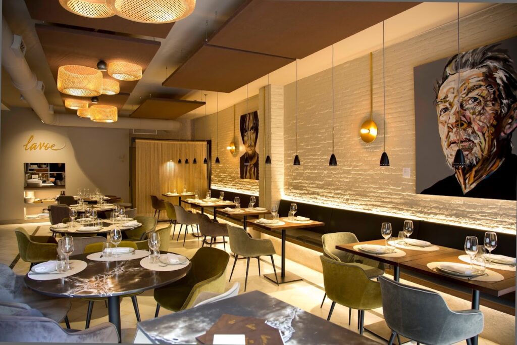 Restaurante moderno, con decoración de diseño, especializado en cocina mediterránea, asiática y occidental.